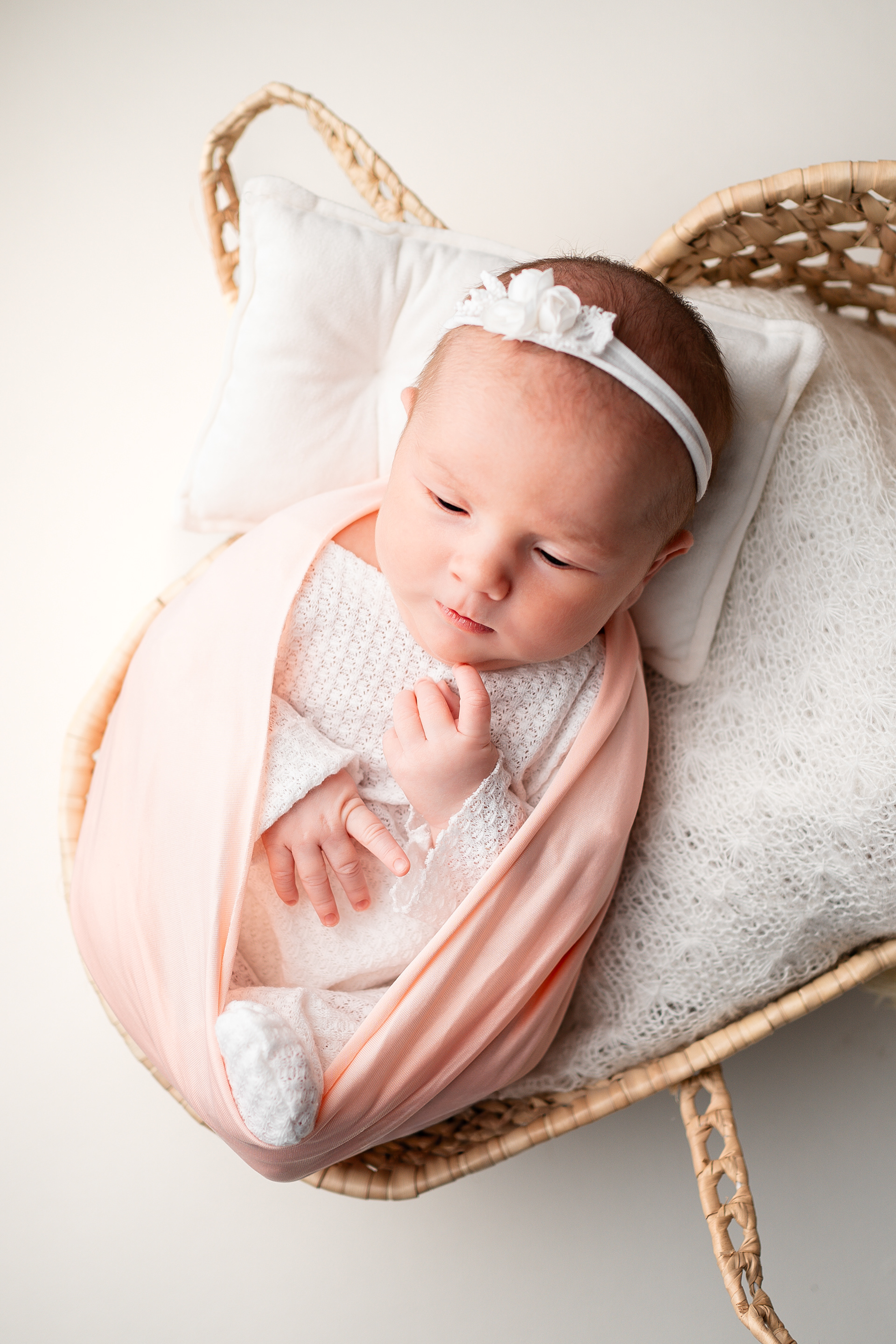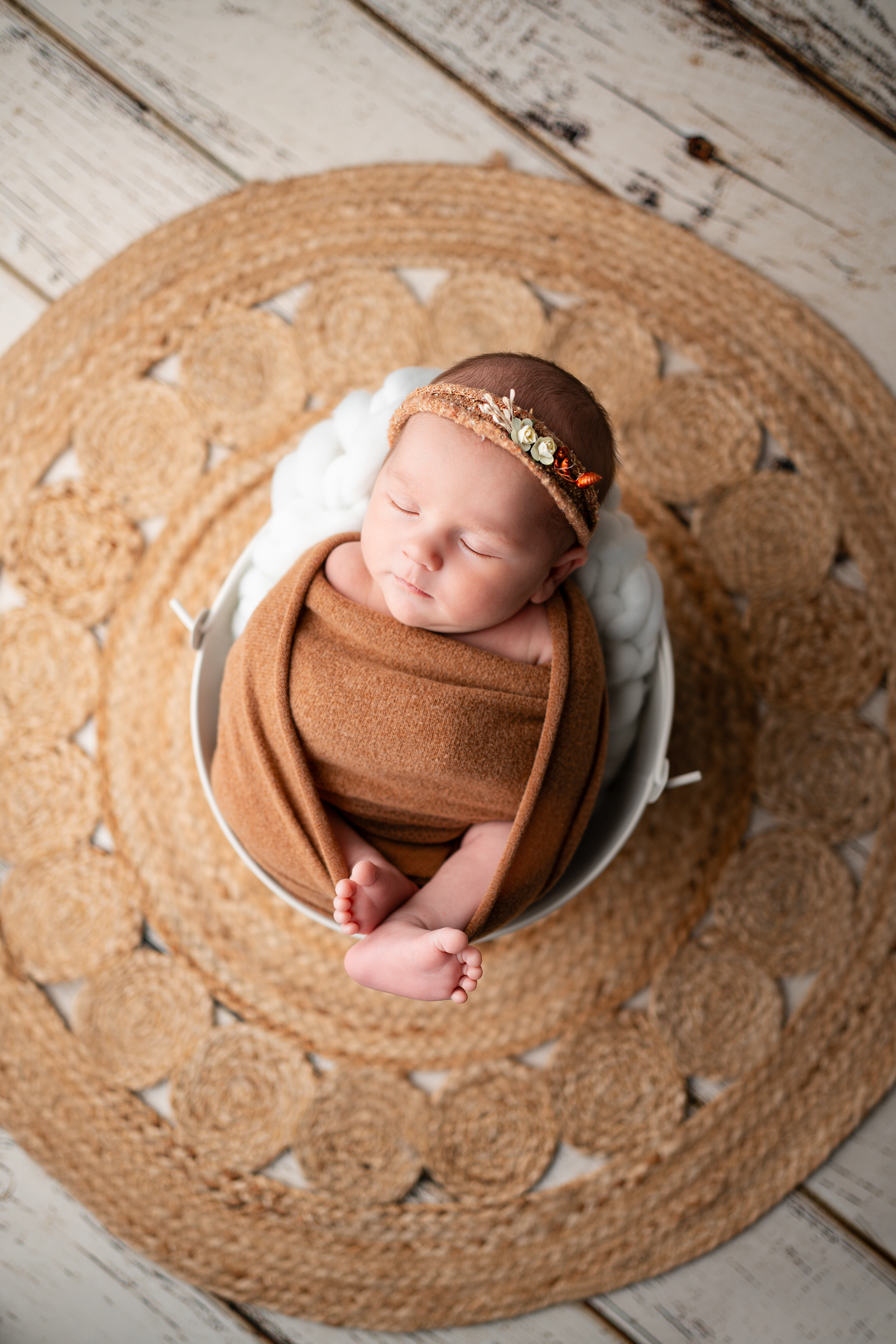 Die gesamte Sitzung findet mit in verschiedenfarbigen Tüchern gewickeltem Baby statt. Durch das Pucken kann ich mit ihm umgehen, ohne dass er aufwacht. Wenn das Baby mitmacht, können einige Aufnahmen auch ohne Wickeln gemaacht werden.